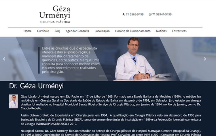 Géza Lászlo Urményi nasceu em São Paulo em 17 de julho de 1965. Formado pela Escola Bahiana de Medicina (1990) , o médico fez residência em Cirurgia Geral na Secretaria da Saúde do Estado da Bahia em dezembro de 1991, em Salvador. Já o estágio em cirurgia plástica foi realizado no Hospital Municipal Barata Ribeiro Serviço de Cirurgia Plástica, em janeiro de 1994, no Rio de Janeiro, com o Dr. Claudio Rebello.